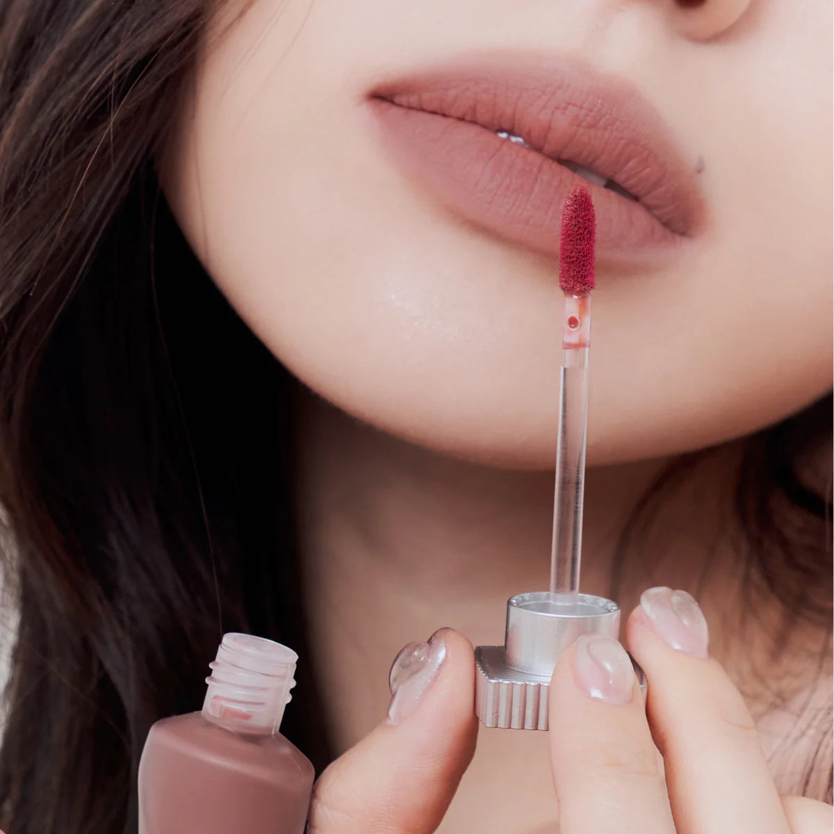 Um batom vegan leve e de alto desempenho, com uma textura aquosa e transparente que se transforma num acabamento suave e difuso, proporcionando uma cor duradoura e uma sensação fresca e quase imperceptível.